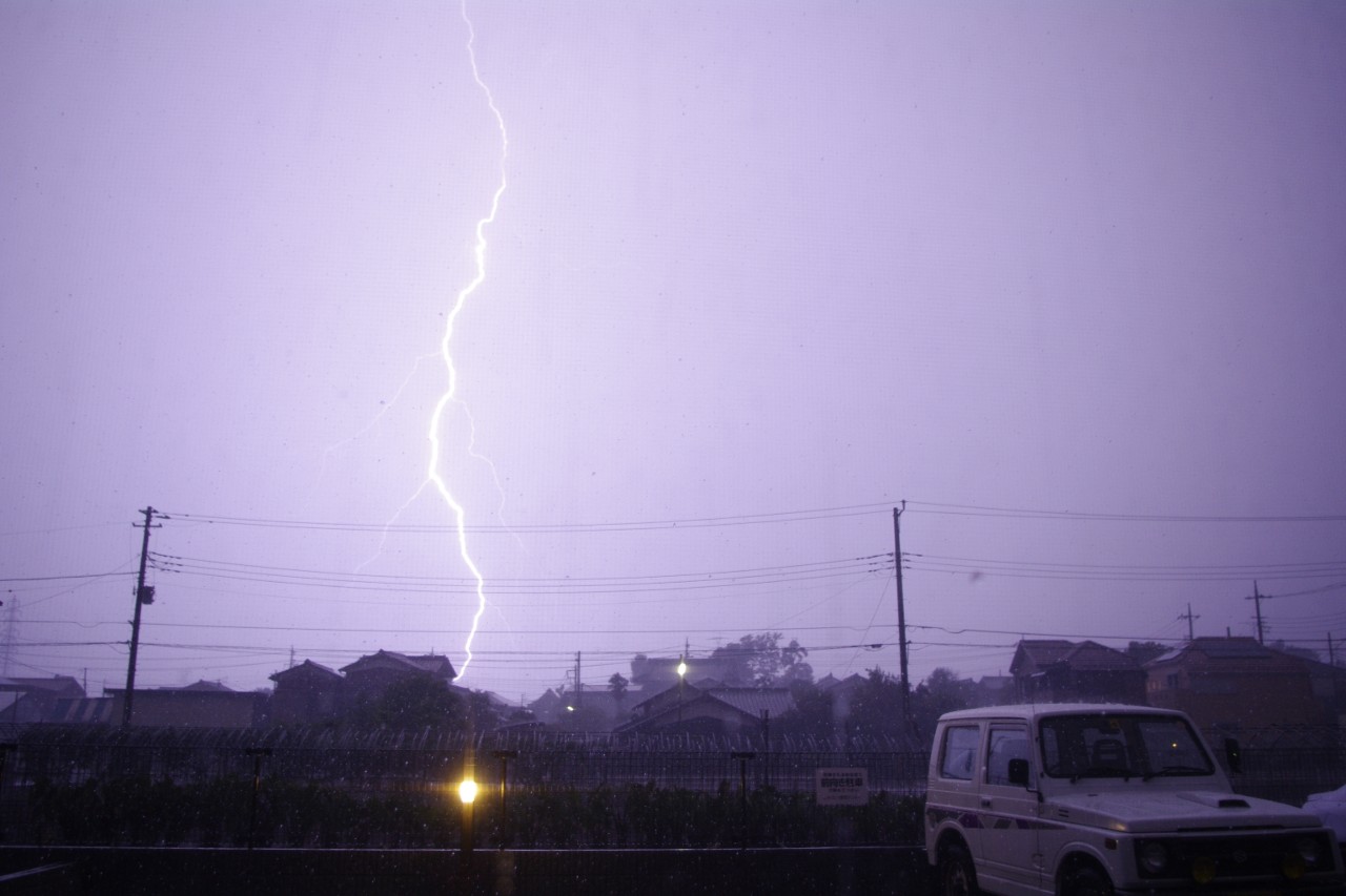 夜の雷、それも至近距離がこんなに明るいとは思わずに、シャッタースピードを調節し間違えてしまい、2,3枚しかまともに撮れませんでした。