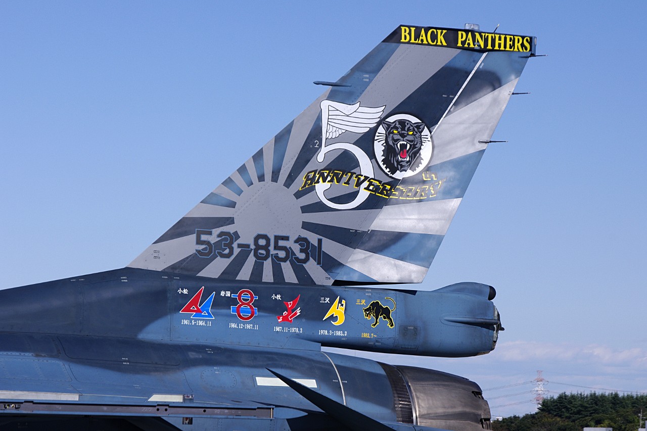 青森県の三沢基地の第8飛行隊が、創設50周年で、それを記念した塗装の機体です。