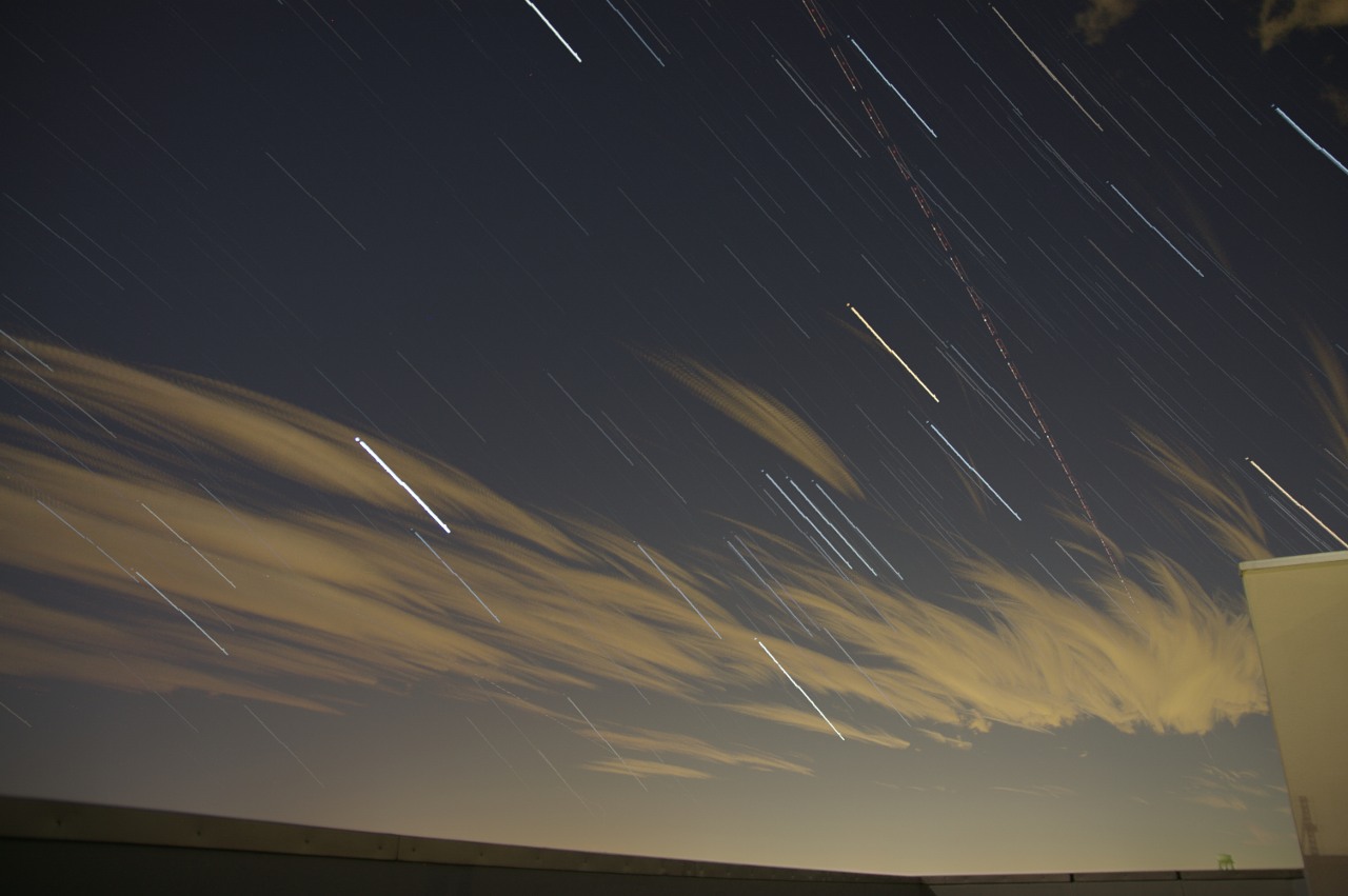 しょうがないので、屋上に三脚立てて、カメラに空をにらんでいてもらいました。