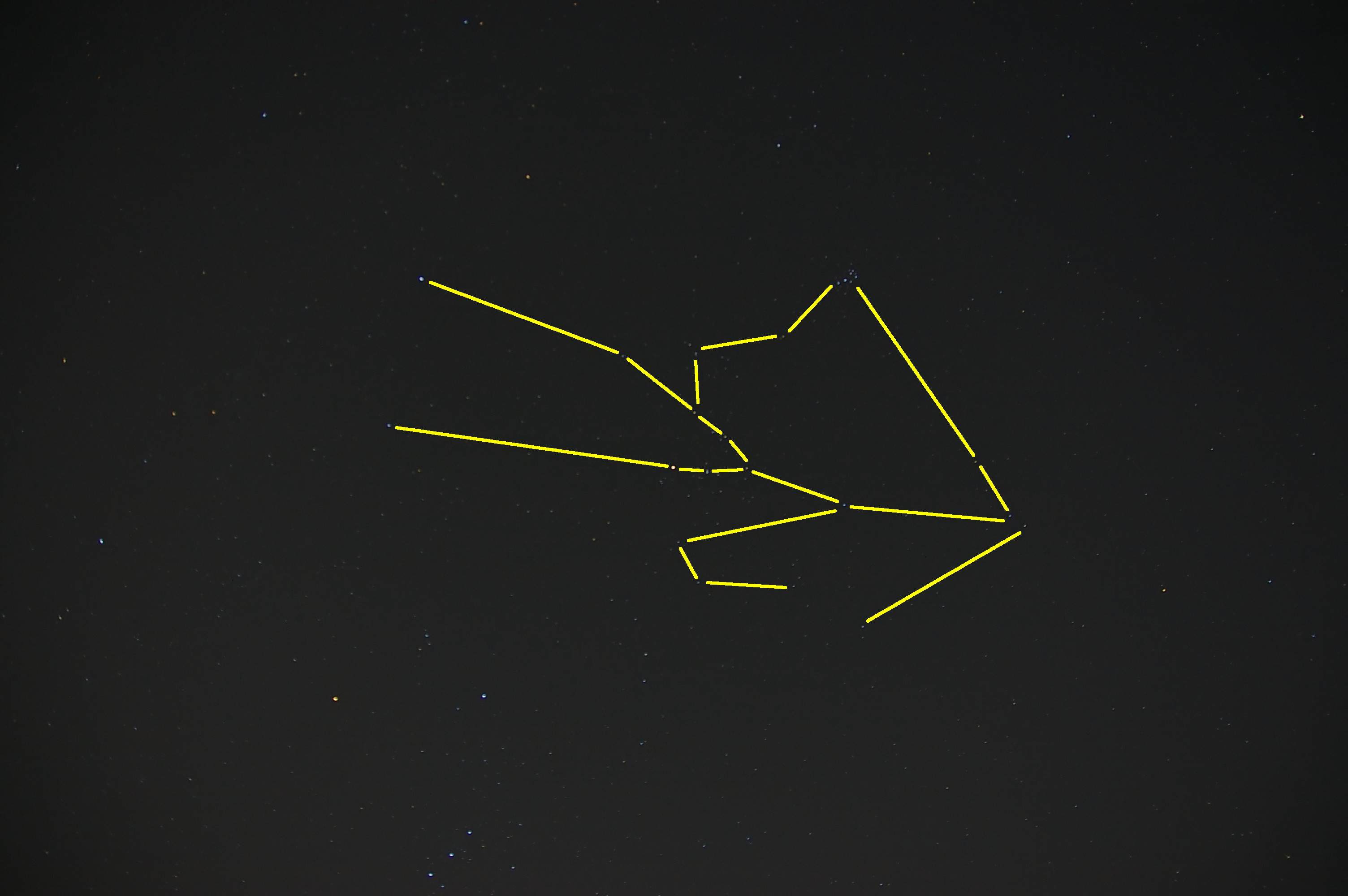 写真をトリミングして、主要な星に点をつけてみました。