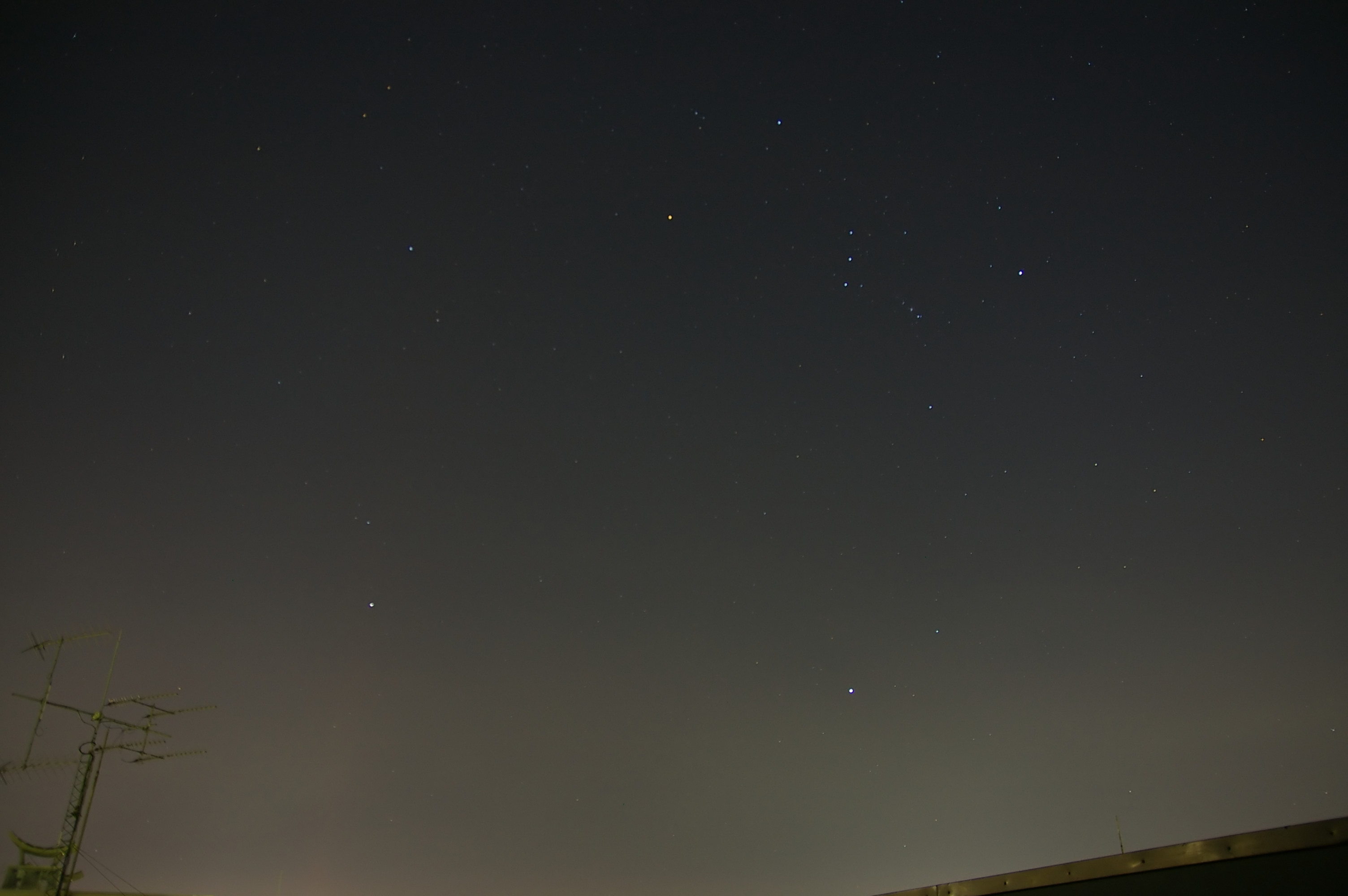 今日は、冬の大三角を肉眼で、プレアデス星団を双眼鏡で眺めていました。