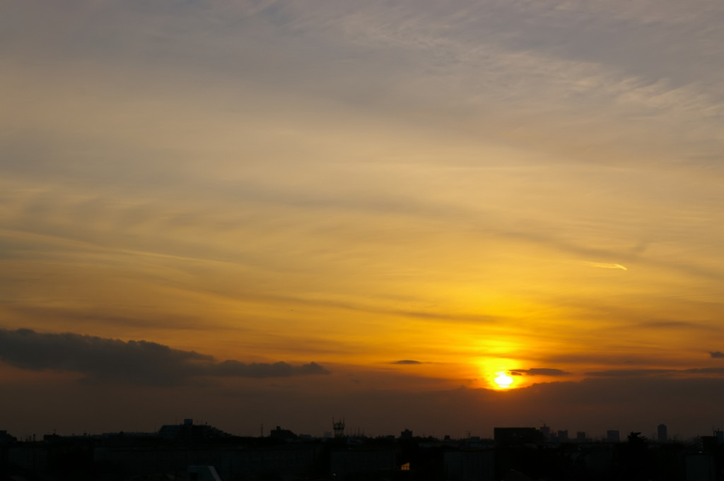 土曜日の夕方、西の空は雲が多く、この前ほど綺麗には夕焼けが撮れませんでした。
