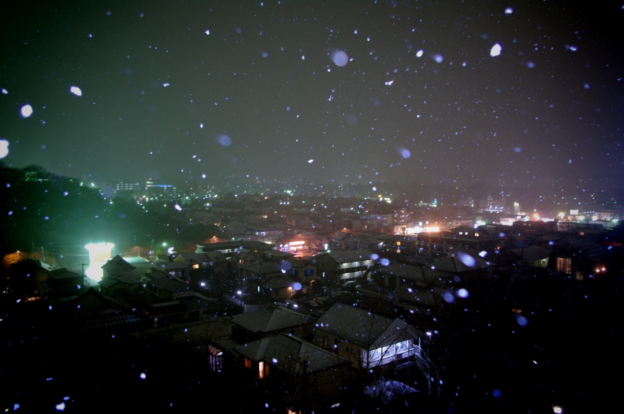 実家にいたのですが、ベランダから写真を撮っていて、頭に雪が積もってしまいました(笑)。